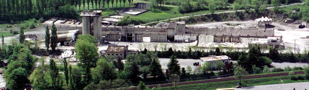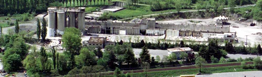 Das Zementareal vor und nach der Sprengung.